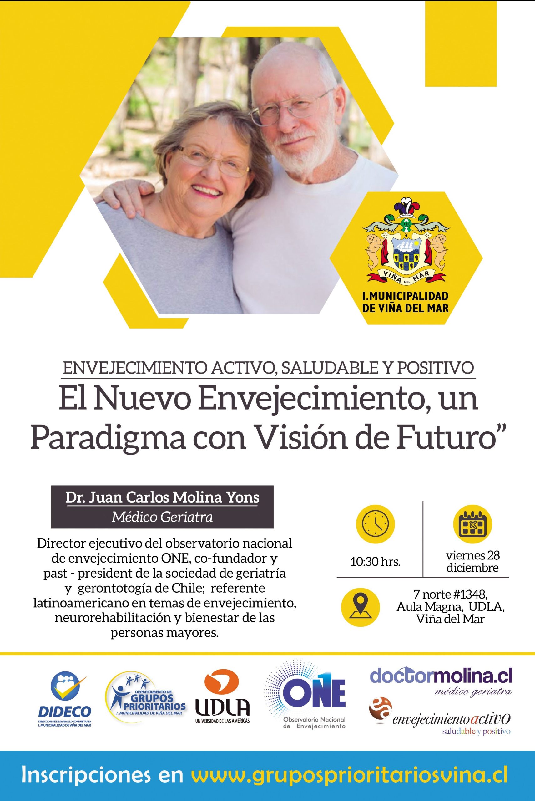 A cargo del médico geriatra Juan Carlos Molina Yons, la que se realizará el viernes 28 de diciembre a las 10:30 horas en UDLA
