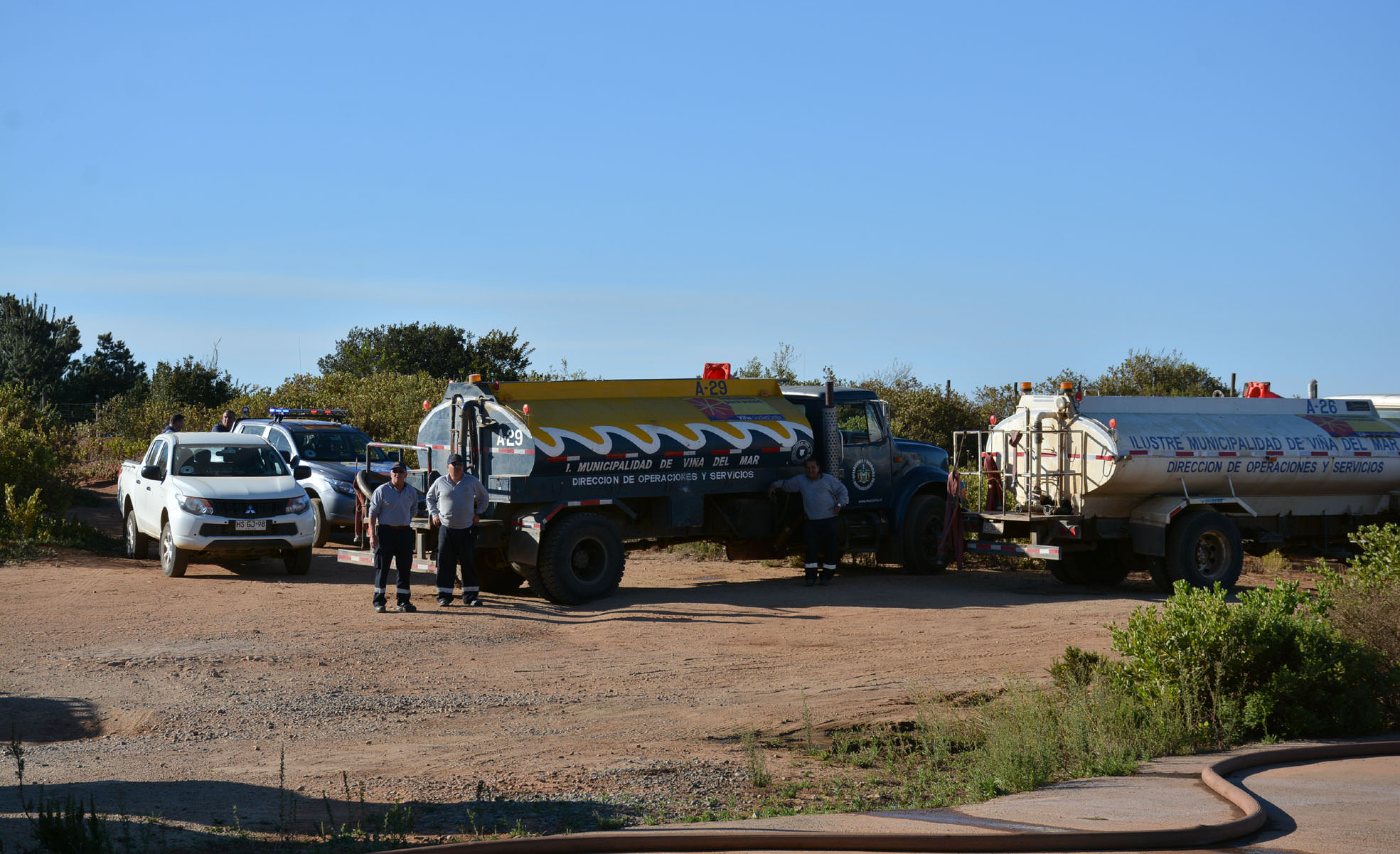 Vehículos fueron dispuestos en Rodelillo para abastecer de agua a los aviones