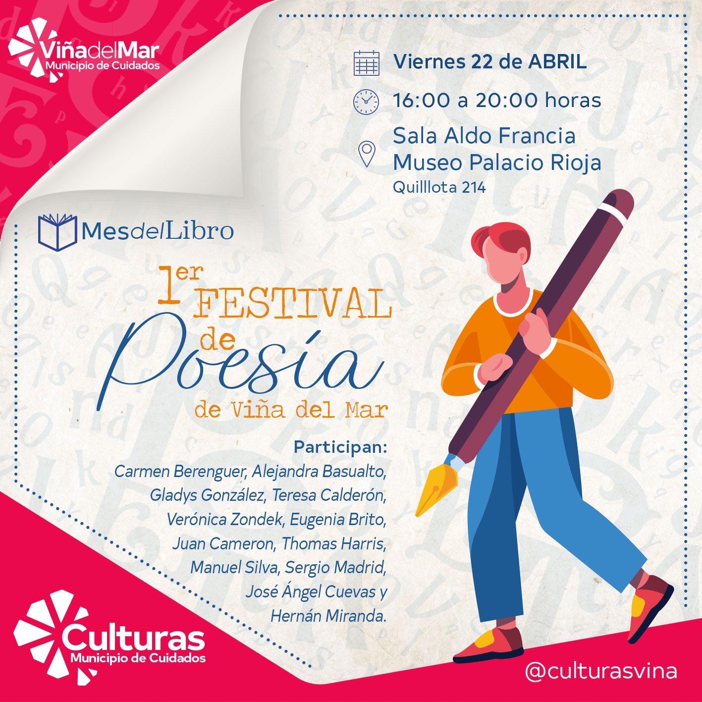 Primer Festival de Poesía de Viña del Mar congregará a grandes escritores nacionales en el Museo Palacio Rioja